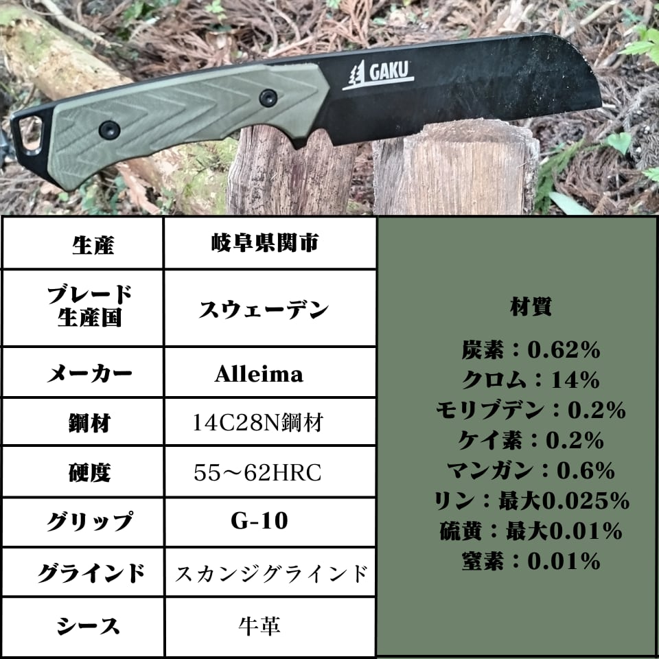 「スウェーデン鋼」ブッシュクラフト専用「GAKUナタナイフ®」
